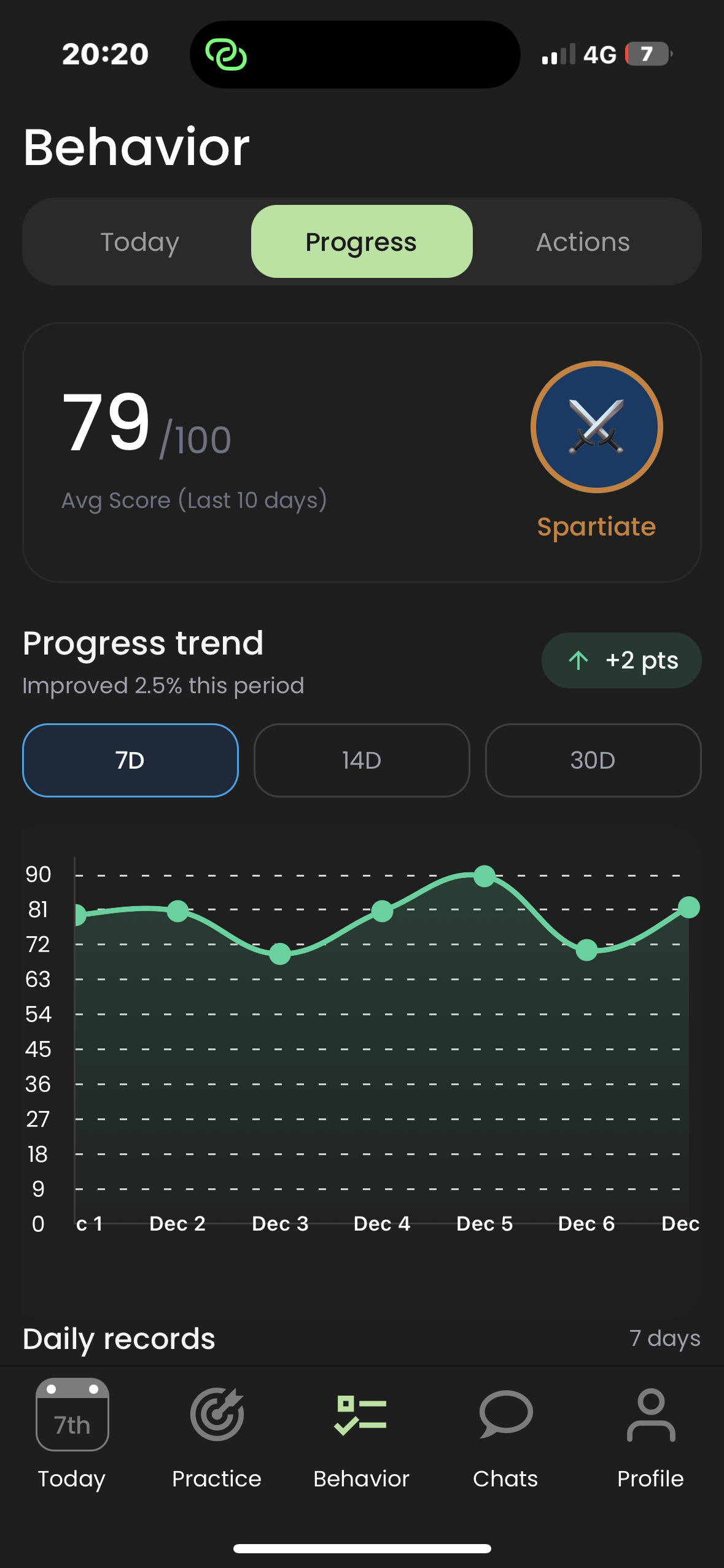 Our behaviour tracking tool helps you track your positive and negative actions and get a score based off of what your actions were each day. Earn higher rank in the Spartan army by scoring better across 10 days.