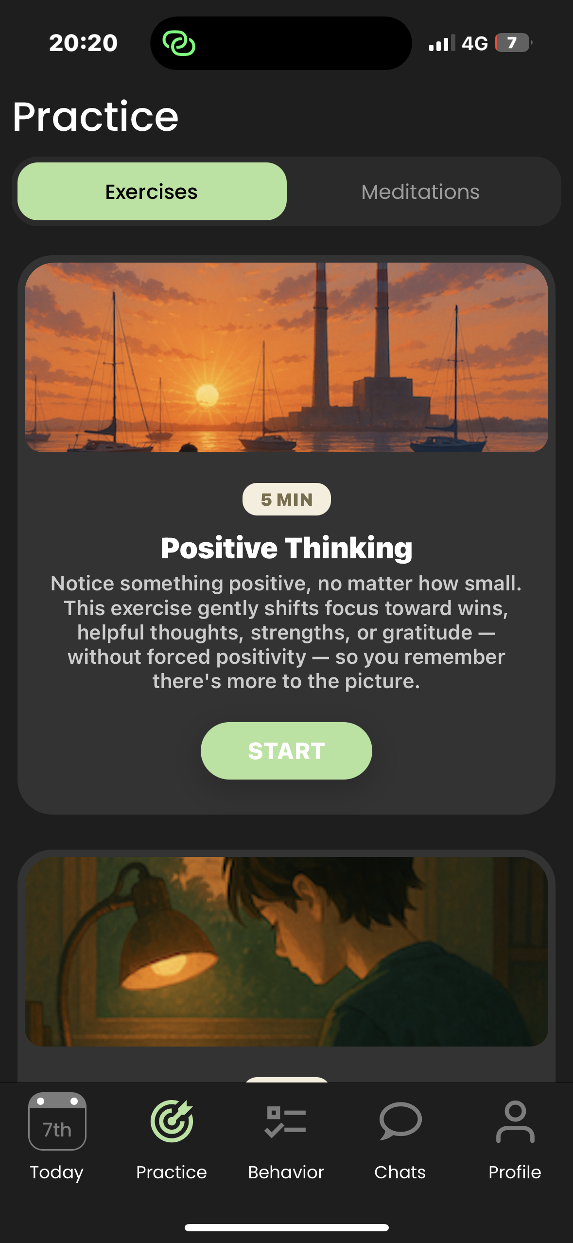 Work with our friendly AI coaches to challenge unhelpful thoughts, build confidence, and develop healthier habits using practical, bite-sized CBT exercises.